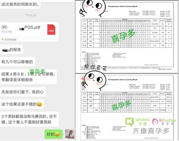 1月31号胚胎活检结果出炉,10个囊胚经过23对全染色体的PGS筛查,结果是6女4男:其中1男1女不能植入,2女不建议植入,剩下的3女3男都是可以移植。并且这3个男宝,是无马赛克的完全健康的胚胎。
